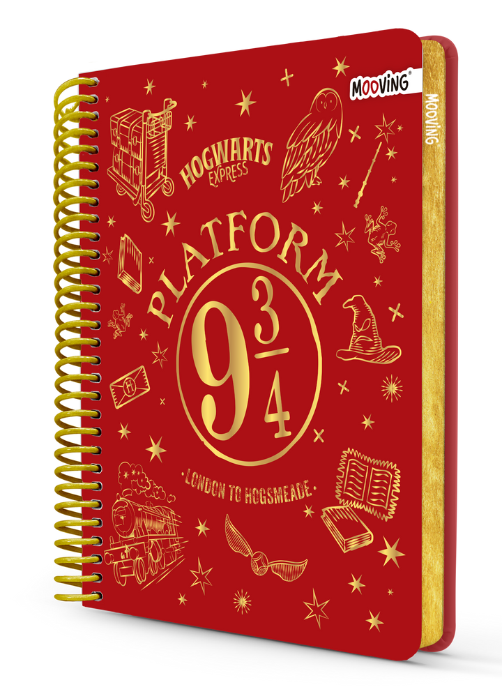 Harry Potter cuaderno Oficio 17x21 cm hojas cuadriculadas. Tapa dura con puntas redondeadas. 1 página de stickers y sobre de papel.